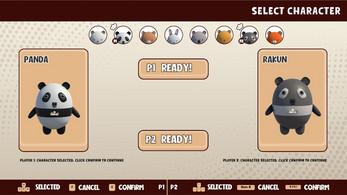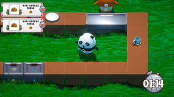 Cookcase is a 2-player cooperative cooking simulation game, where you and a friend manage a small forest restaurant together. Players choose two out of three bear characters — a panda, a brown bear, and a polar bear — and must serve food to various animal customers.
